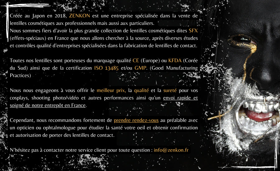 Bienvenue sur notre nouvelle branche française ! 🇫🇷 Nos lentilles de contact sont sélectionnées avec soin, aux normes d'hygiènes européennes. 🇪🇺 Envoi rapide et soigné de notre entrepôt français. 🚚
